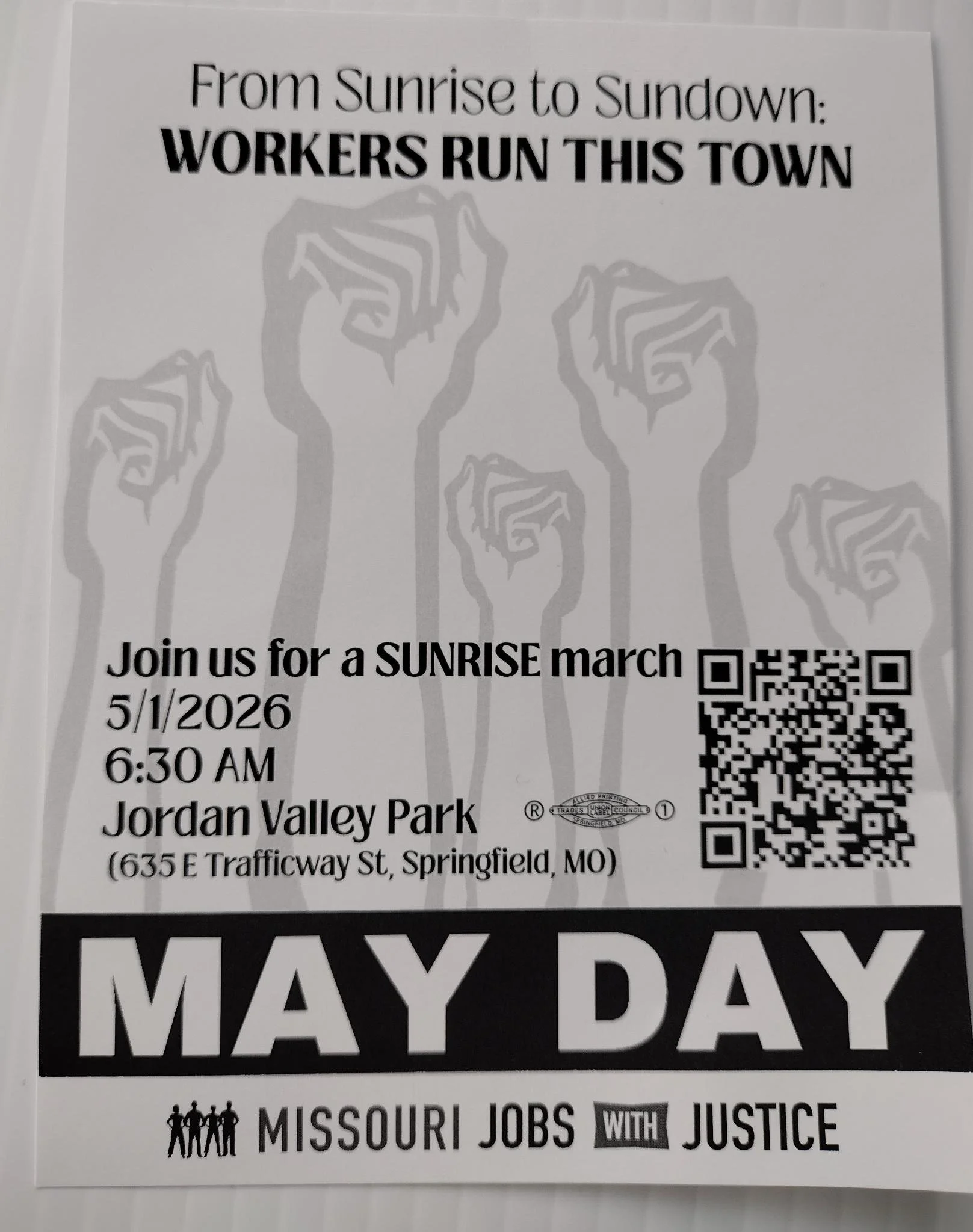 Fri, May 1st - 6:30 am - MAYDAY - “From Sunrise to Sundown: WORKERS RUN THIS TOWN” (SPRINGFIELD)