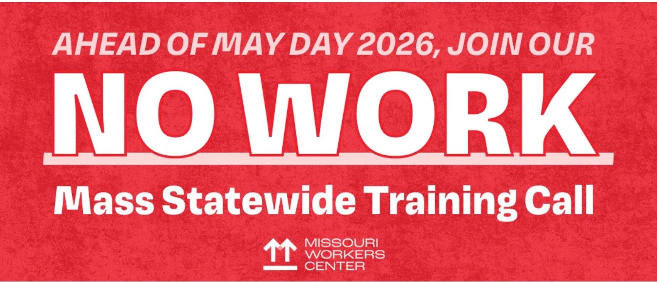 Purpose: May Day is coming, and Missouri workers are joining the nationwide day of action on 5/1/26 to demand an economy, democracy, and America that work for ALL of us! Sign up for our No Work statewide training call on Monday, April 13 and spread the word: bit.ly/noMOwork